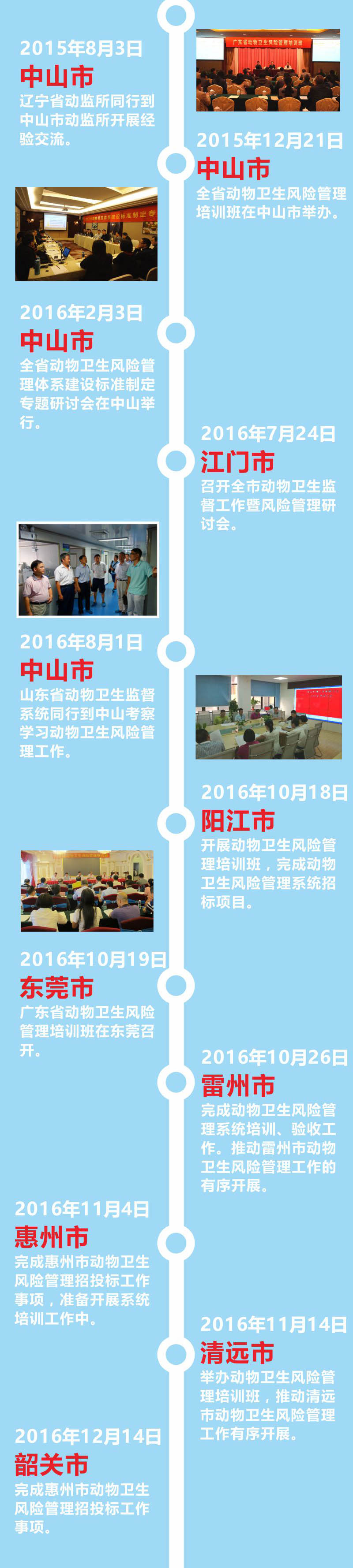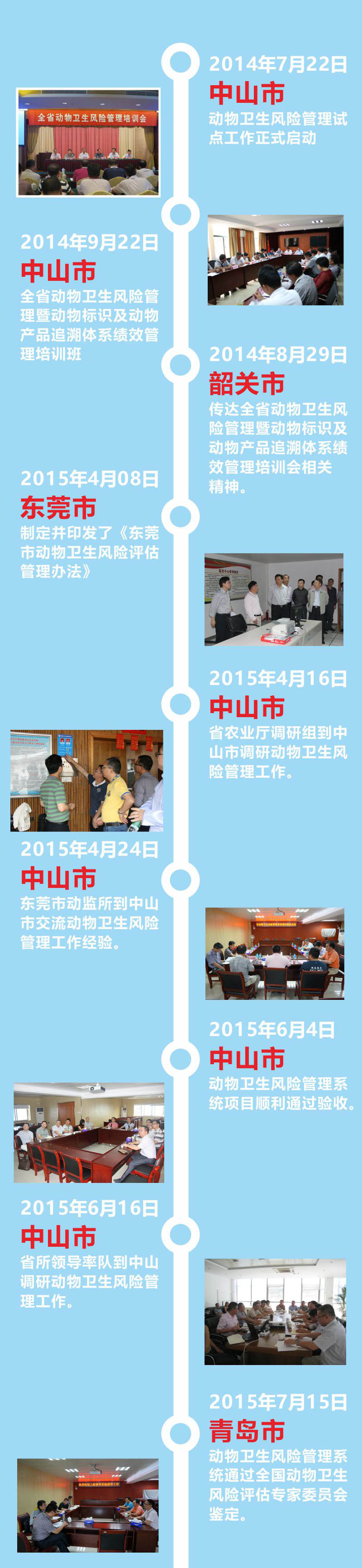2014年動(dòng)物衛(wèi)生風(fēng)險(xiǎn)管理試點(diǎn)工作在中山市正式啟動(dòng),隨后在廣東省動(dòng)物衛(wèi)生監(jiān)督所的帶領(lǐng)下,東莞、韶關(guān)、河源、惠州、陽(yáng)江、清遠(yuǎn)和雷州等地市相繼開展試點(diǎn)工作,組織執(zhí)法人員參加風(fēng)險(xiǎn)管理培訓(xùn)班。2015年動(dòng)物衛(wèi)生風(fēng)險(xiǎn)管理系統(tǒng)在青島市通過全國(guó)動(dòng)物衛(wèi)生風(fēng)險(xiǎn)評(píng)估專家委員會(huì)的鑒定。短短兩年時(shí)間內(nèi),動(dòng)物衛(wèi)生風(fēng)險(xiǎn)管理試點(diǎn)遍布廣東省內(nèi) 8個(gè)地市。這充分說明動(dòng)物衛(wèi)生風(fēng)險(xiǎn)管理系統(tǒng)的應(yīng)用推廣取得了階段性的成功。廣東省農(nóng)業(yè)廳和廣東省動(dòng)物衛(wèi)生監(jiān)督所對(duì)此給予了高度肯定,并表示,動(dòng)物衛(wèi)生風(fēng)險(xiǎn)管理系統(tǒng)的建立有效提高了工作效率,降低了行政成本,提升了物衛(wèi)生的風(fēng)險(xiǎn)控制能力和監(jiān)督管理水平,應(yīng)該在全省范圍內(nèi)推廣。