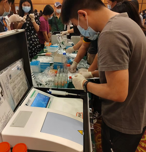 在實(shí)操培訓(xùn)環(huán)節(jié),現(xiàn)場采取分組的形式進(jìn)行,每組配備指導(dǎo)老師,及時(shí)解答參會(huì)人員在實(shí)操中遇到的問題。同時(shí),結(jié)合操作規(guī)范進(jìn)行詳細(xì)講解,針對性強(qiáng)、直觀效果比較好。從稱樣細(xì)節(jié)、樣品搖勻、移液、吹干、滴卡、讀卡等,均一一指導(dǎo)解答,有效提升了快檢從業(yè)人員理論知識(shí)和實(shí)操能力。