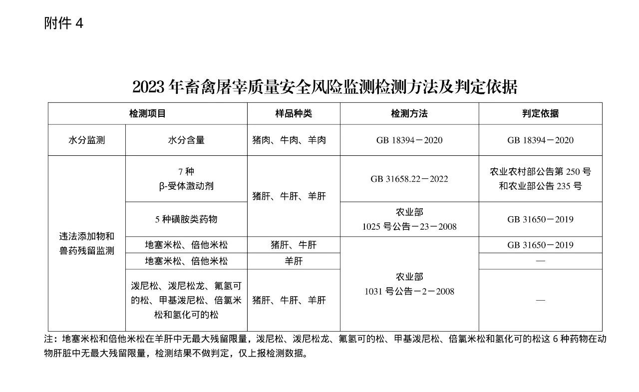 4. 2023年畜禽屠宰質(zhì)量安全風(fēng)險監(jiān)測檢測方法及判定依據(jù)