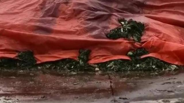 3天后,有工作人員操作挖掘機,將地上的芥菜搬運到鏟車上,運至倉庫中。多番詢問,記者得知,這堆腐爛的芥菜,將被用于橄欖菜制作,而廠家正是知名品牌——玉蕾橄欖菜。
