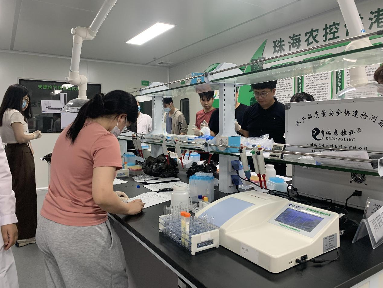 根據(jù)《2023年珠海市開展市場銷售食用農(nóng)產(chǎn)品快速檢測工作方案》有關(guān)要求,為提高食用農(nóng)產(chǎn)品快速檢測操作技術(shù)水平,推進珠海市食用農(nóng)產(chǎn)品快檢工作的順利開展,珠海市市場監(jiān)督管理局于2023年5月18-19日在珠海市農(nóng)產(chǎn)品物流與安全檢測中心舉辦“珠海市2023 年食用農(nóng)產(chǎn)品快速檢測工作培訓班”。珠海市市場監(jiān)督管理局分管領(lǐng)導、珠海市各區(qū)負責食用農(nóng)產(chǎn)品快檢工作的基層監(jiān)管人員、各區(qū)委托第三方檢驗機構(gòu)派出人員,菜籃子配送平臺、農(nóng)貿(mào)市場及超市快檢人員、廣州瑞森生物科技股份有限公司相關(guān)領(lǐng)導及技術(shù)培訓同事參與了本次培訓班活動。