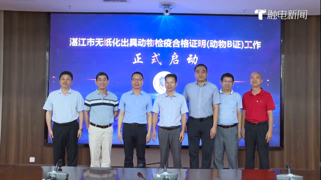 2023年7月7日, 湛江市無紙化出具動物檢疫合格證明和動物B證試點工作正式啟動,成為廣東省首個在動物產(chǎn)地檢疫環(huán)節(jié)實現(xiàn)無紙化出證的地級市,標志著湛江動物檢疫和獸醫(yī)行政監(jiān)管工作邁入無紙化時代。